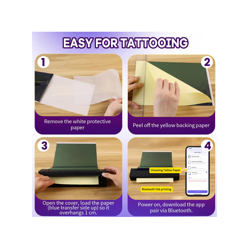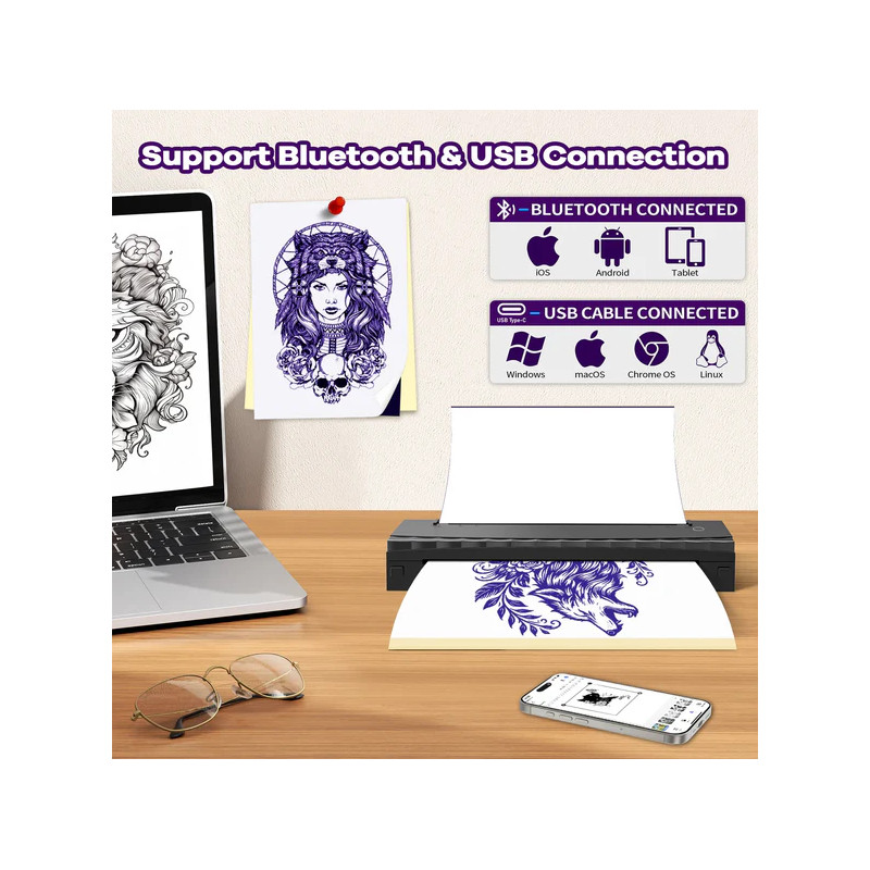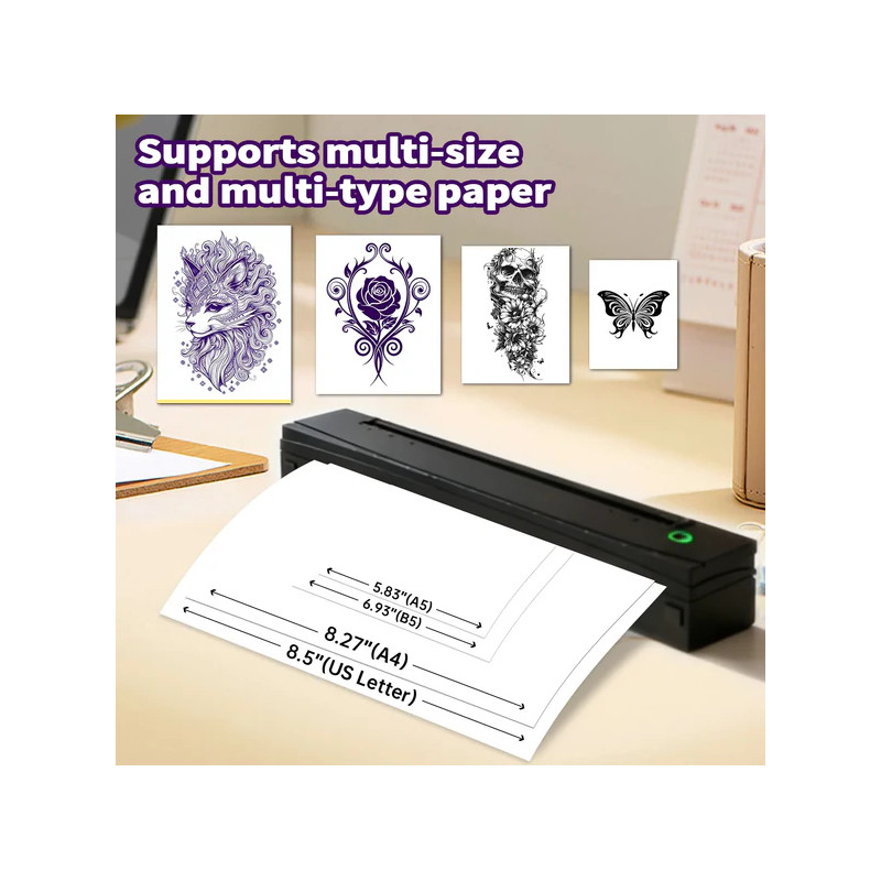 Versatile Media Support: Compatible with thermal paper and specialized tattoo transfer paper in A4, A5, B5, and Letter sizes.